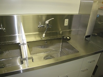 水漏れ不可なので溶接に細心の注意を払いました。しかし歪が発生し底が浮き上がりまわりに水がたまってしまい、それを整形するのに苦労しました。