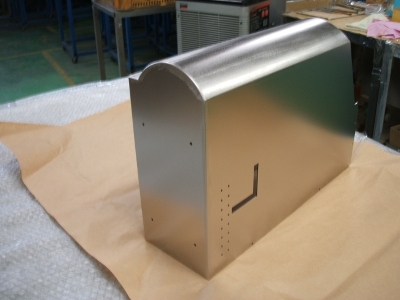 通常の曲げ金型を使用し、R69の形状を加工しているところがポイントの製品です。R部の金型跡を消す仕上げも時間をかけて丁寧に行っています。