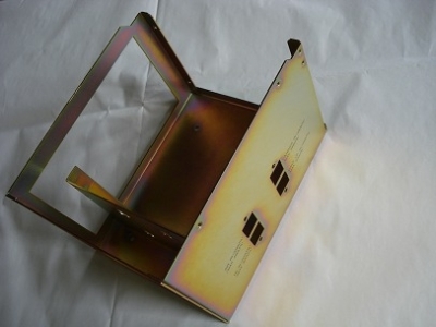 シルク印刷の面があるので、キズをつけない様に注意して加工しています。また、曲げ金型に干渉するので手で矯正しながら寸法を出しています。