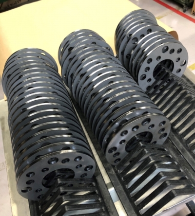 (バリ取り):ジョイント、ドロスをヤスリで取り、メタルエステでバリ取りを行いました。板厚が厚く、穴も多いためメタルエステの高さに注意し、製品が動かないようにバリ取りを行いました。